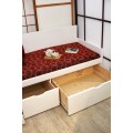 Les tiroirs de rangement sous votre lit peuvent supporter jusqu'à 80 kg. Vous pouvez y ranger l'équivalent d'une valise. Les tiroirs des canapés Massako sont un réel gain de place et leur manipulation est facilitée par des poignées passage de main. Les tiroirs de rangement ont une profondeur de 62 cm et une hauteur de 28,5 ou 14 cm.